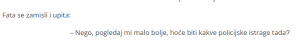 • Zamislite, Fata se nije srušila u suzama, nije vrištala, nije tražila pomoć. Umesto toga, ona je sa smirenjem upitala: “Nego, pogledaj mi malo bolje, hoće biti kakve policijske istrage tada?” Ova reakcija je potpuno promenila ton razgovora, jer Fata je kroz humor pokušala da ublaži teške vesti koje je čula. Nije se preplavila od straha, nije se povukla u očajanje. Umesto toga, odlučila je da sačekuje, da sve sagleda s druge strane i postavi pitanje koje je obuhvatilo celu situaciju – hoće li biti problema? Ovo je bio njen način da izbegne paniku i da nađe snagu u teškom trenutku.