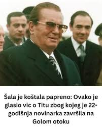 - Kako je kasnije zapisano u tekstu koji je objavila Politika, list u kojem je i sama radila, po Ženi su došla dvojica pripadnika UDB-e. Optužba nije bila samo u tome što je ispričala vic, već i što nije prijavila „narodnog neprijatelja“ od kojeg ga je čula. Sistem nije poznavao naivnost niti slučajnost. Sve je imalo svoju cenu.