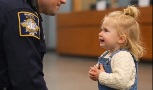 Mala devojčica je pažljivo pogledala seržanta, a zatim ga uplašeno upitala: „Da li ste sigurno policajac?“ Seržant je odgovorio sa osmehom, pokazujući svoju uniformu, dok je govorio: „Naravno, vidite moju uniformu.“ Devojčica je klimnula glavom, ali je ostala tiha, kao da je još razmišljala o nečemu ozbiljnom. Iako je sve izgledalo kao neki nesporazum, njeno ponašanje nije moglo da se zanemari, jer je svaki njen pokret odražavao zabrinutost i patnju koju je nosila u svom srcu.